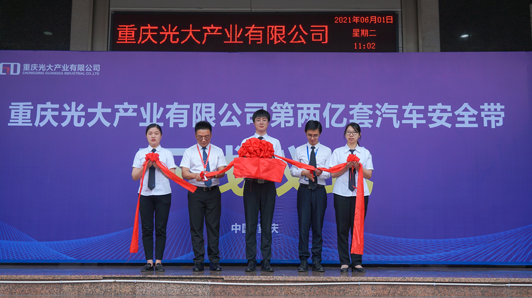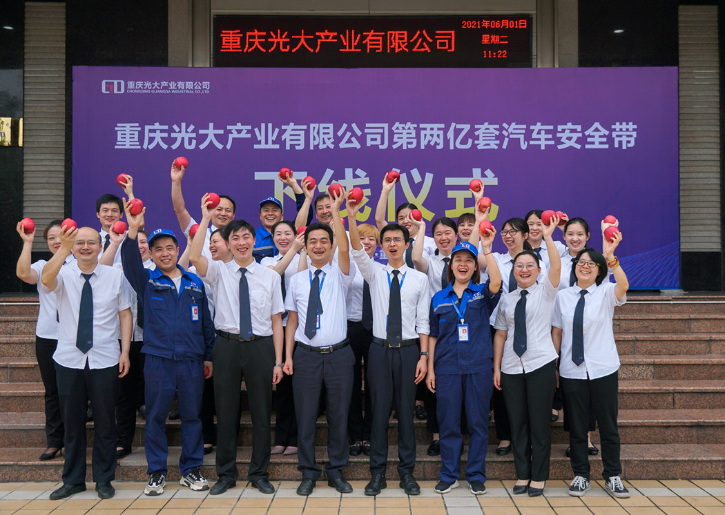 2021年6月1日,重慶光大産業有限公司第兩億套汽車安全帶下線儀式在工廠隆重舉行,公司領導班子成員與600多名員工共同見證了這曆史性時刻。第兩億套汽車安全帶産品是光大發展曆史上的一座裏程碑,更是光大面向未來的一個新起點。圍繞公司經營方針,銳意進取、開拓創新,光大人以更加昂揚的姿态團結一緻、齊心協力緻力于生産環保、安全、可靠産品,爲汽車工業的騰飛貢獻更優質的産品和更良好的服務。