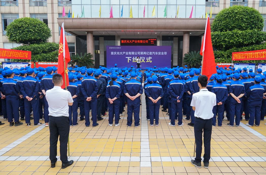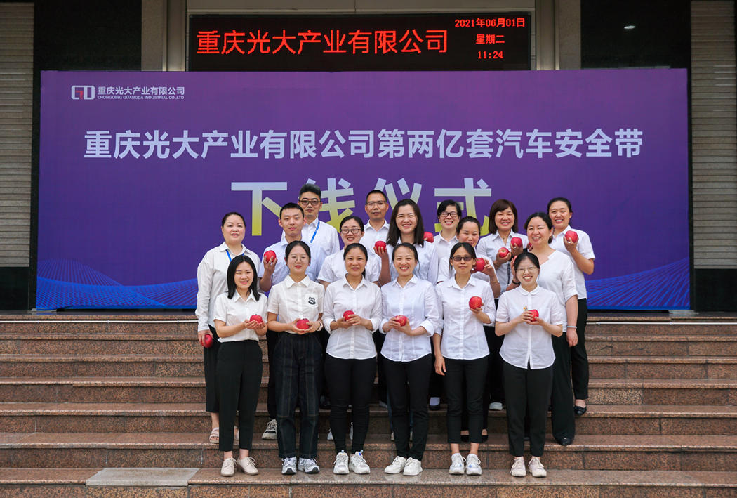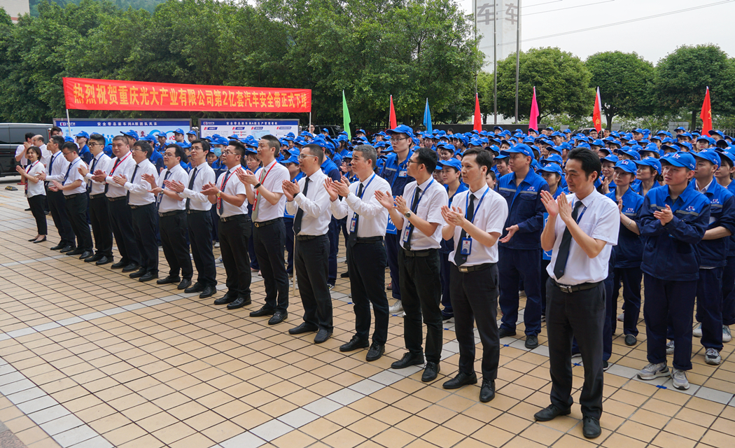 2021年6月1日,重慶光大産業有限公司第兩億套汽車安全帶下線儀式在工廠隆重舉行,公司領導班子成員與600多名員工共同見證了這曆史性時刻。第兩億套汽車安全帶産品是光大發展曆史上的一座裏程碑,更是光大面向未來的一個新起點。圍繞公司經營方針,銳意進取、開拓創新,光大人以更加昂揚的姿态團結一緻、齊心協力緻力于生産環保、安全、可靠産品,爲汽車工業的騰飛貢獻更優質的産品和更良好的服務。